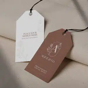 Estas etiquetas son increíblemente versátiles, ya que pueden utilizarse tanto como etiquetas para la ropa como para colgar en una amplia variedad de artículos, como cajas, tarros y bolsas. Además, gracias a nuestro proceso de personalización, tienes la opción de incluir tu logotipo, un mensaje de tu marca o ambos.