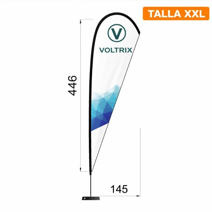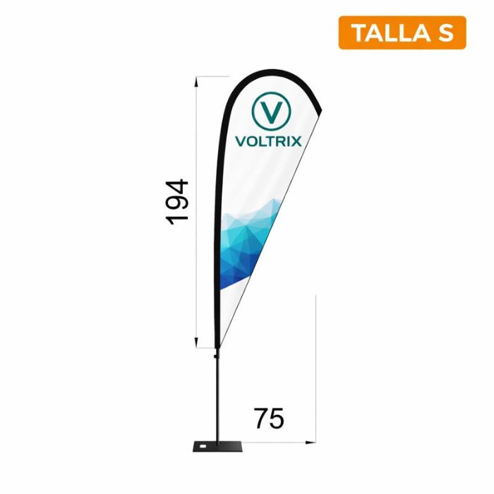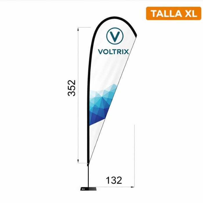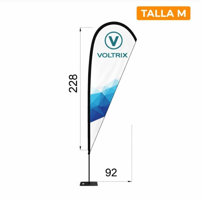 Disponemos de 5 tamaños de bandera Gota para que puedas elegir el que mejor se adapte a tu espacio, visibilidad y tipo de evento: