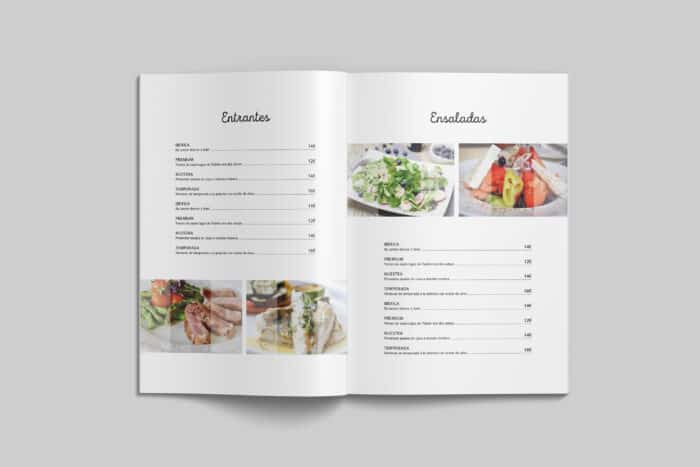 El formato Folleto, tamaño folio impreso por las dos caras, está recomendado para un menú de 70 a 120 platos, aunque con las herramientas que ponemos a tu disposición puedes incrementar el numero de platos.