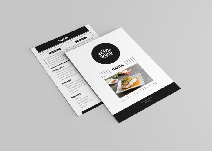 Este formato de carta, tamaño folio impreso por las dos caras, está recomendado para un menú de 10 a 40 platos, aunque con las herramientas que ponemos a tu disposición puedes incrementar el numero de platos.