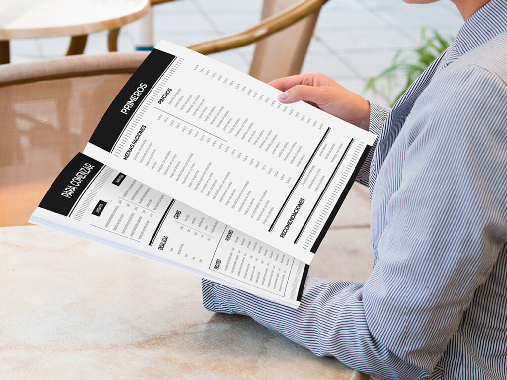 Tus cartas y menús aguantarán las manchas de comidas y bebidas siendo muy duraderas, con gran calidad de impresión.
