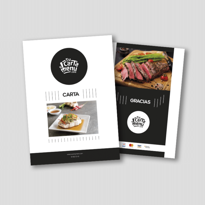 Es una solución sencilla y económica para las cartas y menús de tu restaurante, en papel estucado mate de 300 grs con gran calidad de impresión, pero cuidado porque al no estar protegido se deteriora antes. Te recomendamos esta opción para cartas y menús que no tengan que aguantar mucho tiempo expuestos.