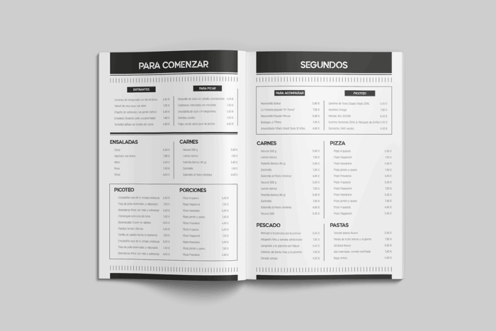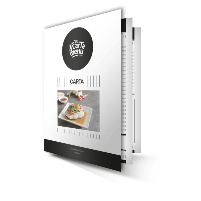 El formato Folleto, tamaño folio impreso por las dos caras, está recomendado para un menú de 70 a 120 platos, aunque con las herramientas que ponemos a tu disposición puedes incrementar el numero de platos.