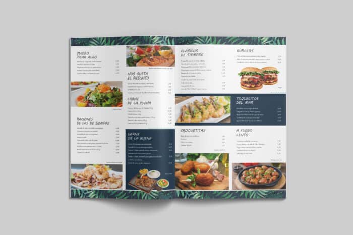 El formato Díptico, tamaño folio impreso por las dos caras, está recomendado para un menú de 50 a 60 platos, aunque con las herramientas que ponemos a tu disposición puedes incrementar el numero de platos.