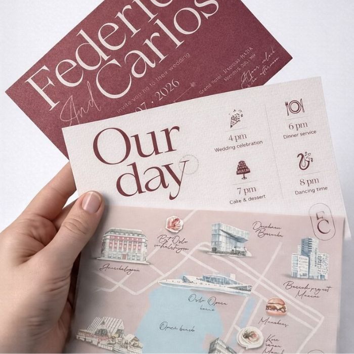 En Sarao cuidamos cada detalle para que vuestra invitacion boda A5 refleje la esencia de la boda. Podéis personalizar diseño, papel, sobres y acabados, eligiendo entre opciones de alta calidad y texturas especiales.