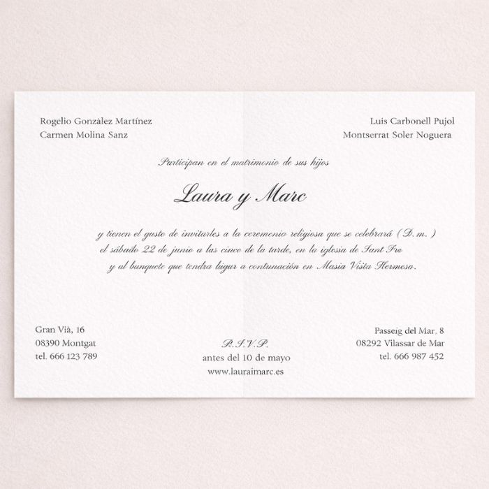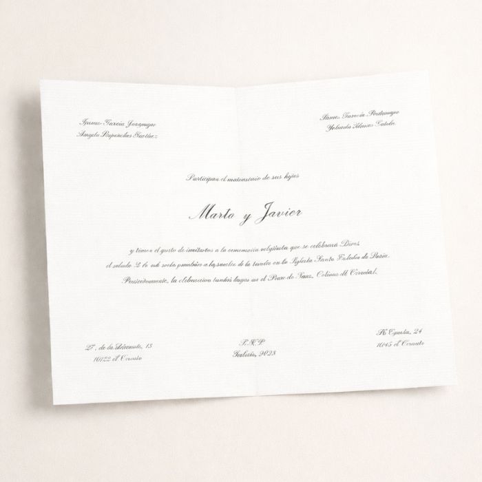 La invitación de boda clásica díptico A5 es una opción elegante y atemporal para anunciar vuestro gran día, perfecta para celebraciones con un estilo tradicional y cuidado.