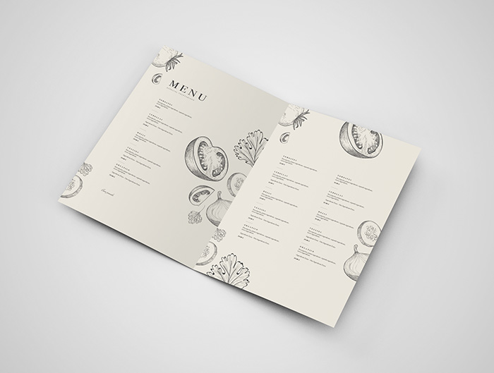 El formato Díptico, tamaño folio impreso por las dos caras, está recomendado para un menú de 50 a 60 platos, aunque con las herramientas que ponemos a tu disposición puedes incrementar el numero de platos.