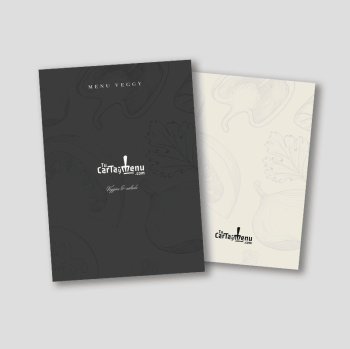 Esta plantilla es ideal para elaborar tu carta Vegana, muy clara y elegant.
