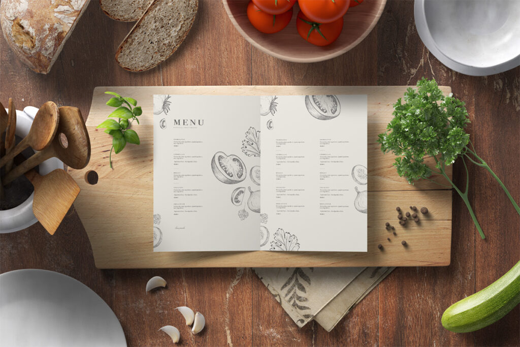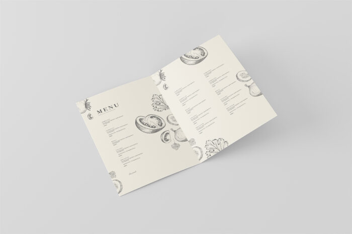 Este formato de carta, tamaño medio folio impreso por las dos caras, está recomendado para un menú de 15 a 35 platos, aunque con las herramientas que ponemos a tu disposición puedes incrementar el numero de platos.